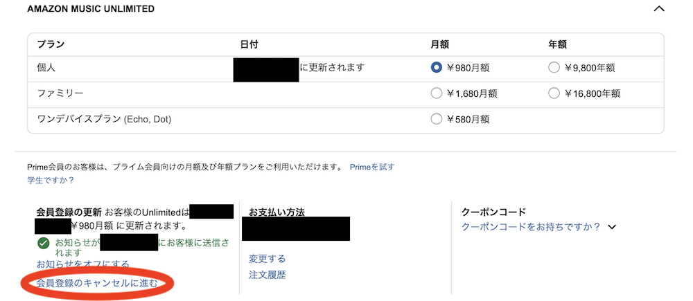 - Amazon Music Unlimitedの管理画面から簡単に解約できるが、そのページの場所が分かりにくい。