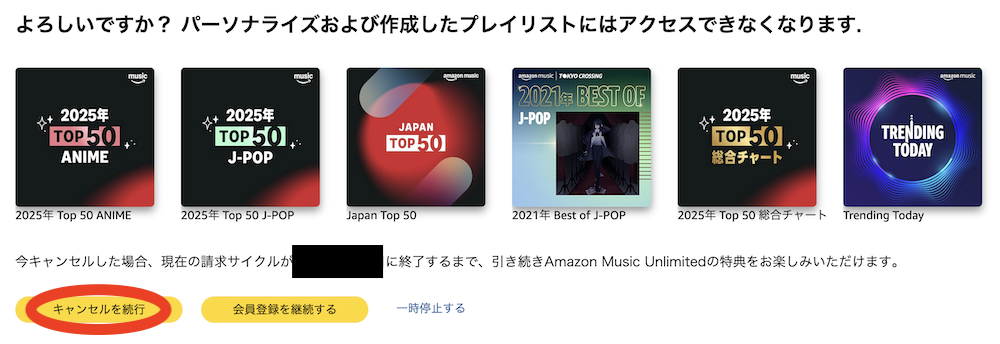 Amazon Music Unlimitedの解約ページ