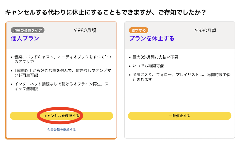 - 一時停止もできるという引き留めがある。