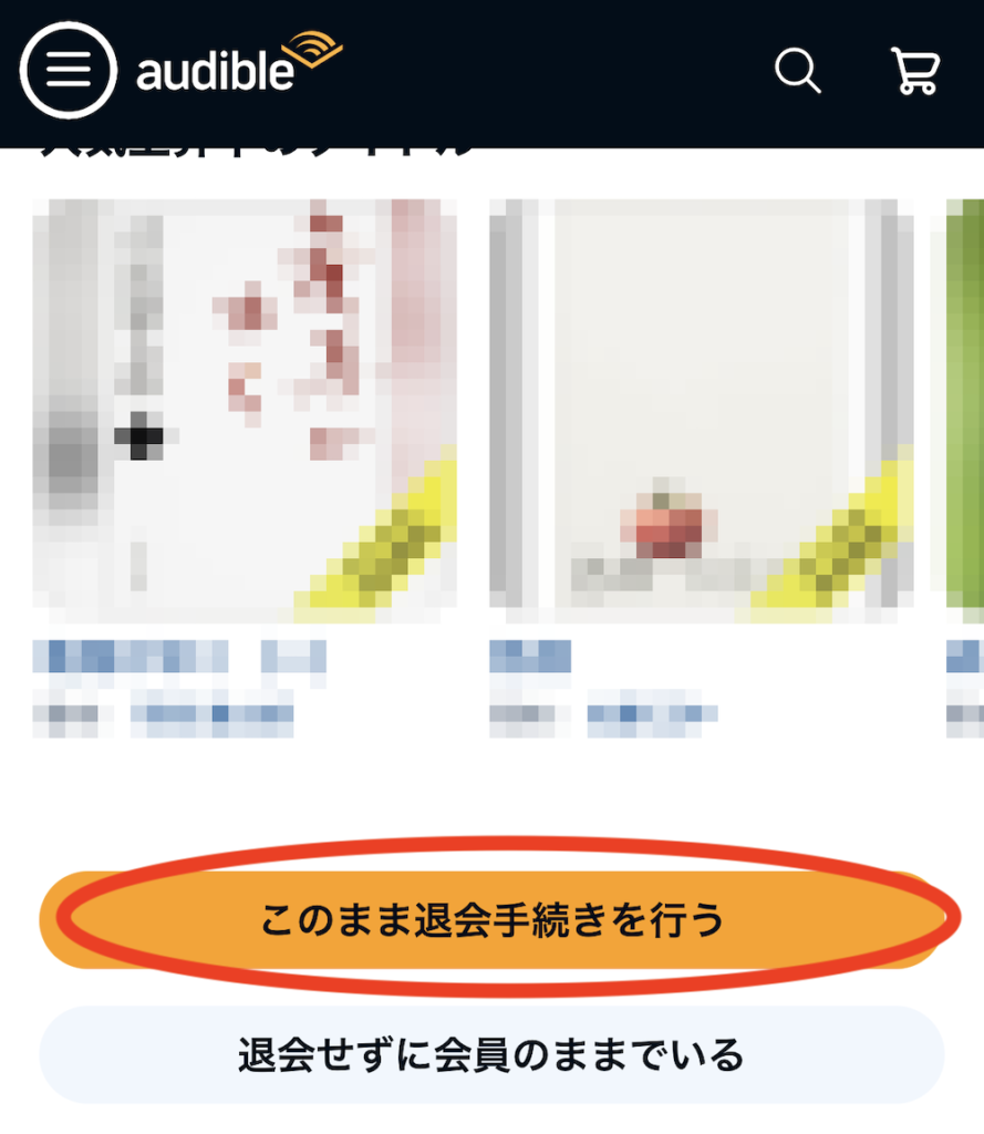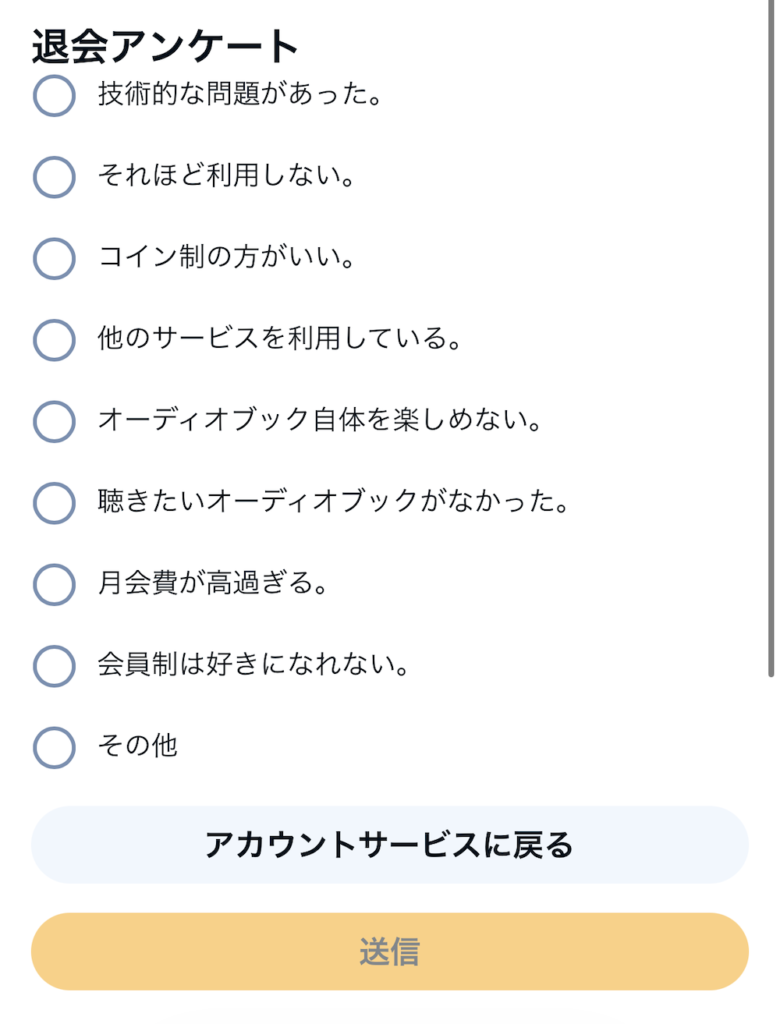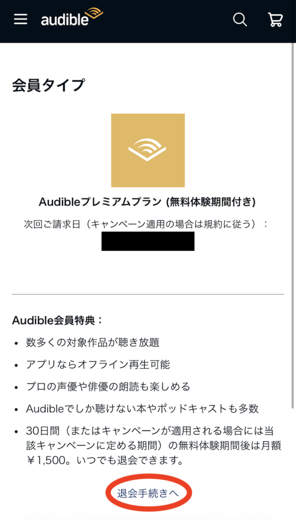 Audibleの退会手続きページ