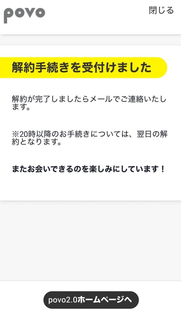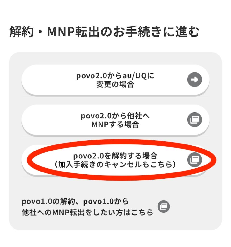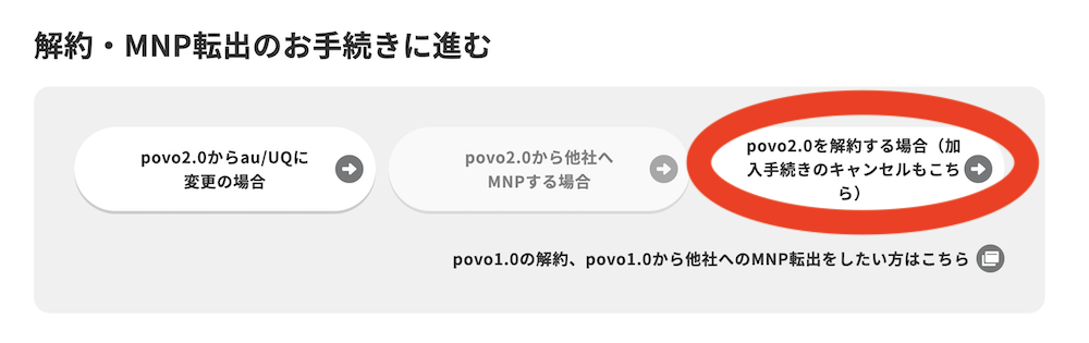 povo2.0の解約ページ
